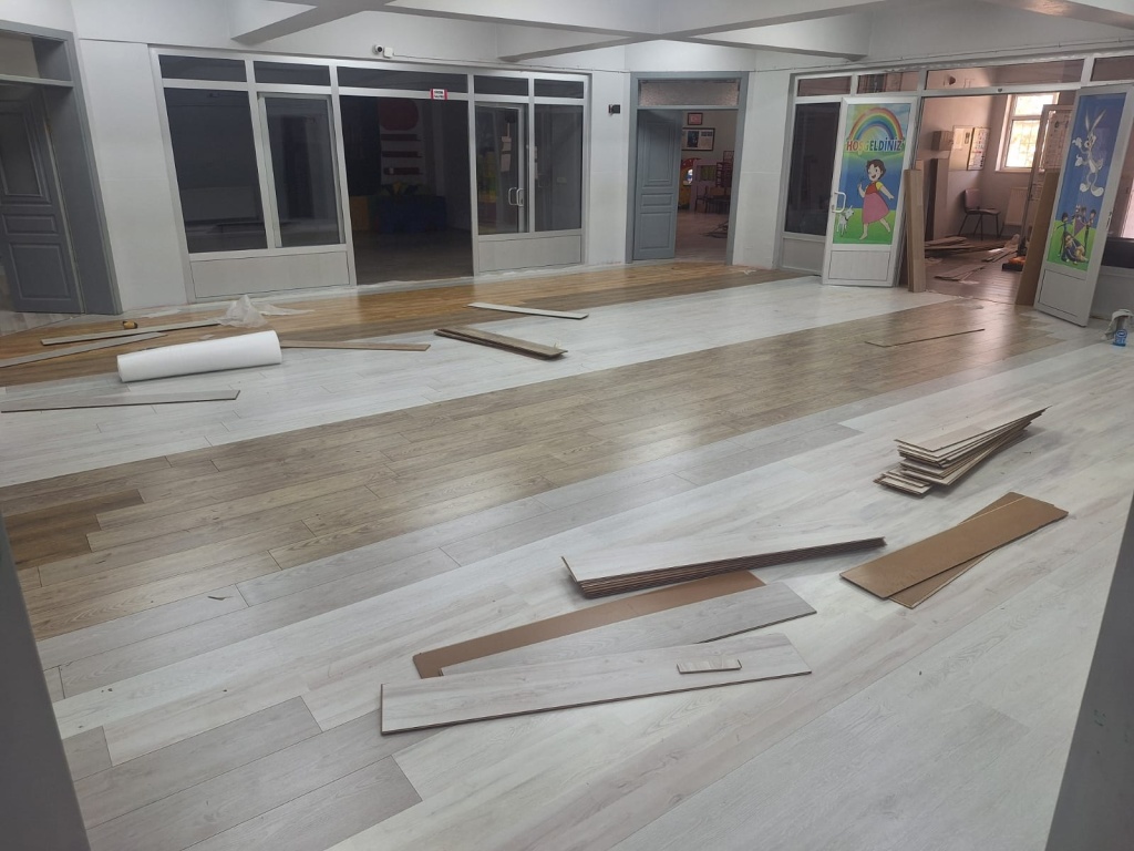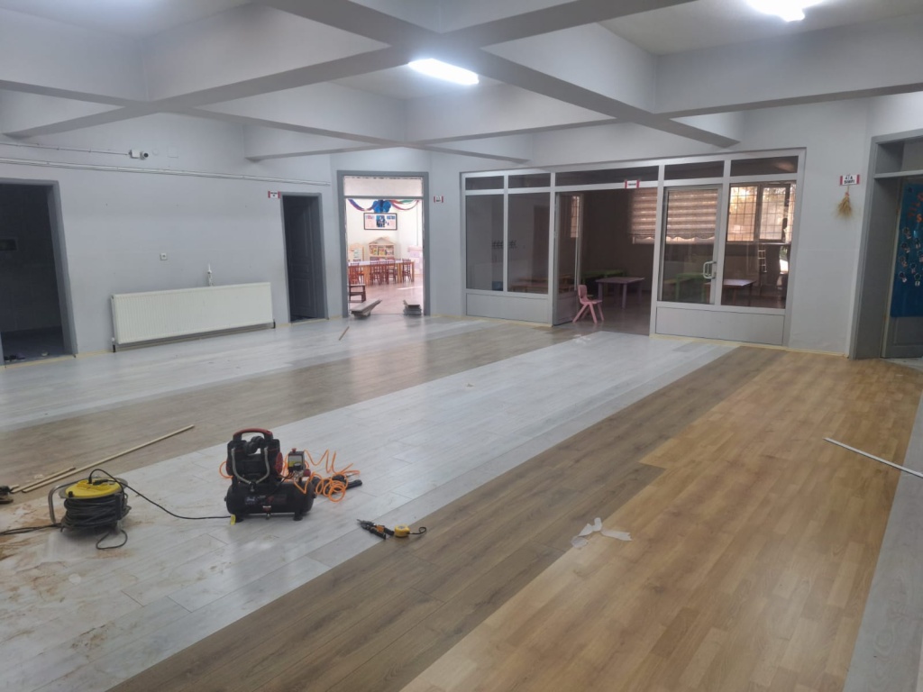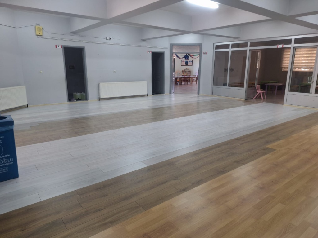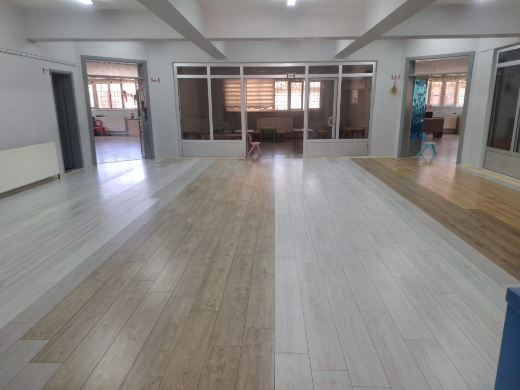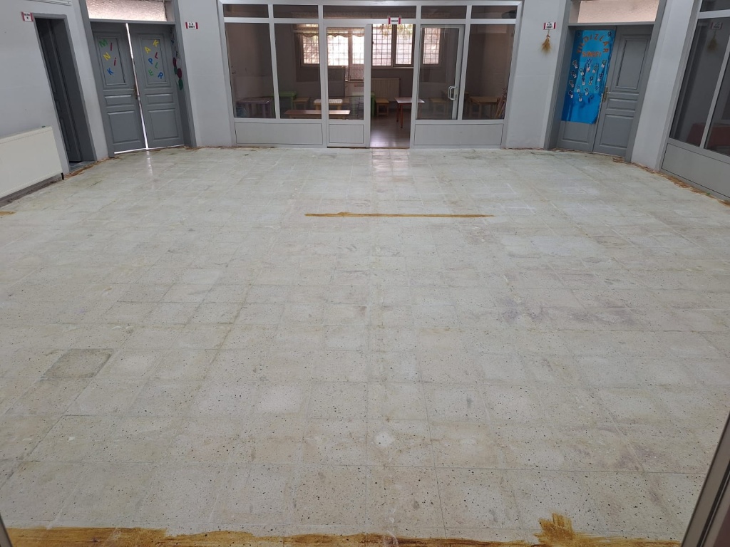 Okulumuz içerisinde bulunan ortak alanda eskiyen ve altı karo olan kısım parke ile yenilenmiştir. Okulumuza malzeme teminin de bulunan Nurvan İnşaat Sn.Zeyni GÜMÜŞ ve Sn.Numan GÜMÜŞ'e, ustalığını titiz bir şekilde gerçekleştiren Sn.Ferhat DEMİR'e ve değerli velilerimize teşekkür ederiz.